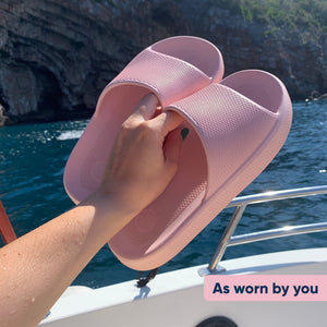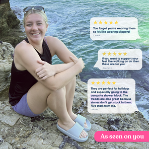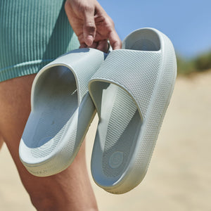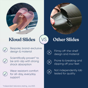 Our Kloud Slides are scientifically proven* to offer high anti-slip resistance, so you can feel confident wearing them anywhere and everywhere. They also offer a super-supportive grip for all surfaces/terrain such as sand, bark, grass, gravel, larger stones, mud and metal.