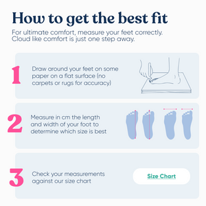 Our Kloud Slides are available in 5 sizes XS, S, M, L and XL to accommodate a range of sizes from UK 4 - 10. To find the perfect fit, please see our size chart which has more measurement details. We’ve improved our sizing based on customer feedback for a comfier fit than ever before. We recommend measuring your foot and going with the size you believe will be comfiest to wear.